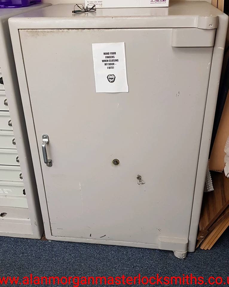 Double door security cabinet opened and reinstated in Derby. Locked out due to a faulty electronic combination lock. Professional safe opening and repairs. No drilling or damage, new lock fitted from stock. Professional safe engineers looking after another happy customer. Locksmiths Derby.