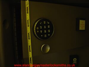 Insert safe with La Gard electronic digital combination lock. Anti hold up coffers inside the main safe can help protect cash from going missing during opening hours. Time delays reduce both the likelihood and the losses associated with armed robbery. Lock opened and replaced from stock for another happy customer.