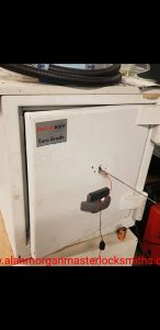 A Securikey Polifer Euro Grade safe opened in South Yorkshire. La Gard 33e digital electronic combination lock defeated without drilling into the safe door or body via highly technical spindle hole defeat method. New lock fitted to make this safe ready to use. #safecracker on tour