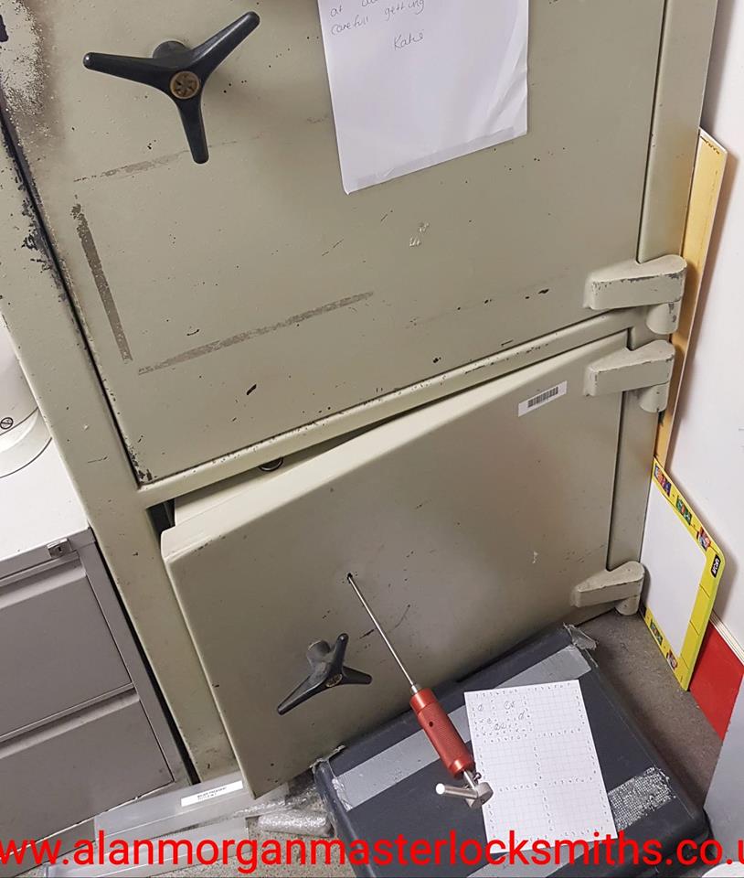 Dudley Harlech safe picked open in Hull. This safe was built into a wall so it was imperative not to do any damage and keep it in use. Alan Morgan Master Locksmiths attended and opened the safe without damage, the lock was rekeyed to differ and the mechanism serviced.